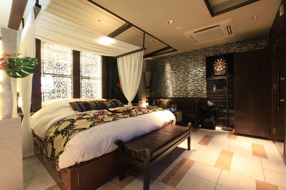 女性に人気の天蓋付きベッドがあるお部屋やおしゃれなアートが飾ってある部屋もあるので、インテリア好きさんにもおすすめです。