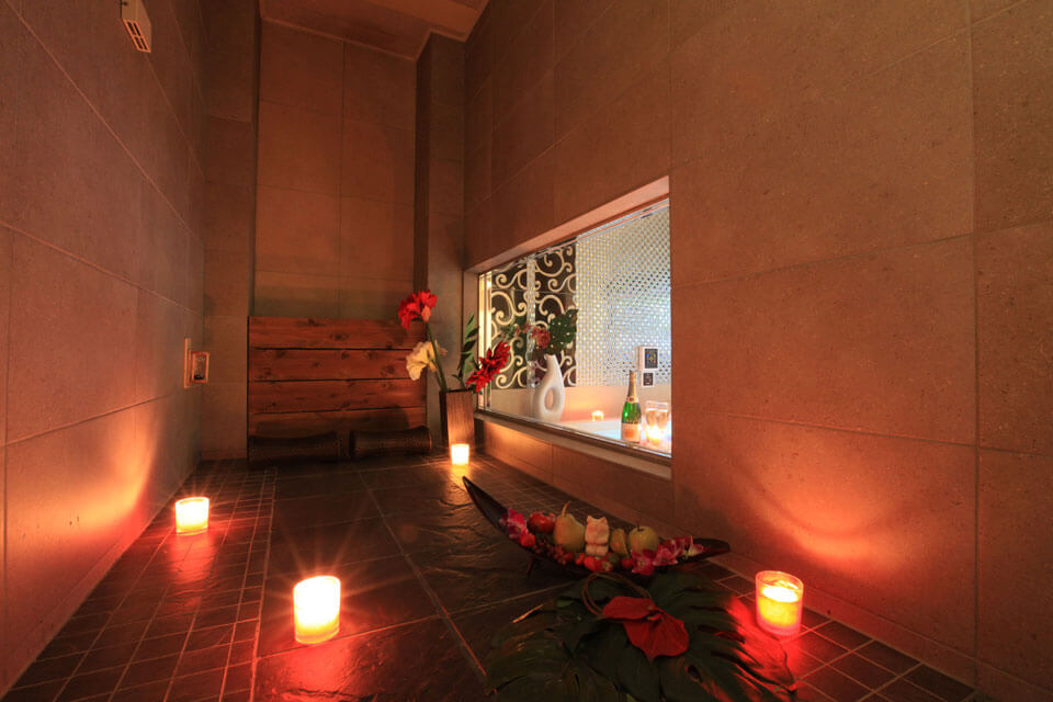 続いての京都のラブホテル「GRASSINO(グラッシーノ)」のおすすめポイントは、「岩盤浴」のあるお部屋があること!一部客室のみの設備ではあるのですが、癒し効果は絶大!