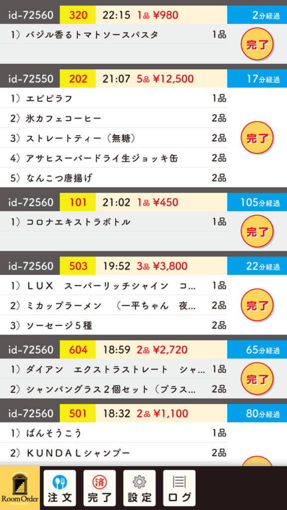 ルームオーダー用の画面も見やすいため、便利に利用できます。