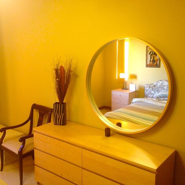 とっても広いお部屋で、枕元の鏡やピンクのキラキラが