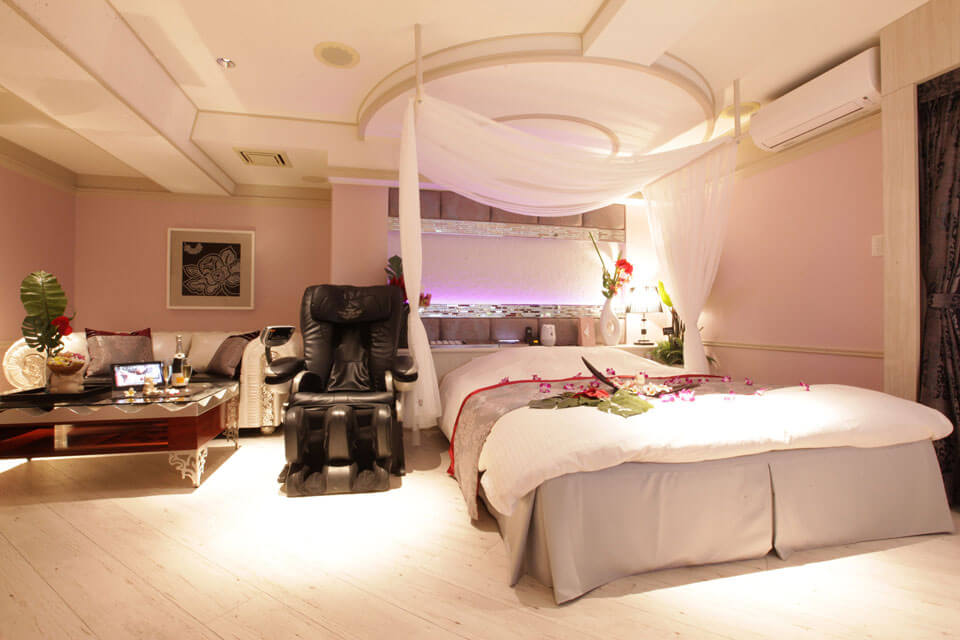こちらのラブホテルは女性受け抜群のおしゃれで贅沢な客室が魅力的。おしゃれなお部屋へ彼女を案内すると、きっと感激してくれることでしょう。天蓋ベッドのあるお部屋をはじめ、アジアンリゾートをほうふつとさせるお部屋もありバラエティも豊かです。